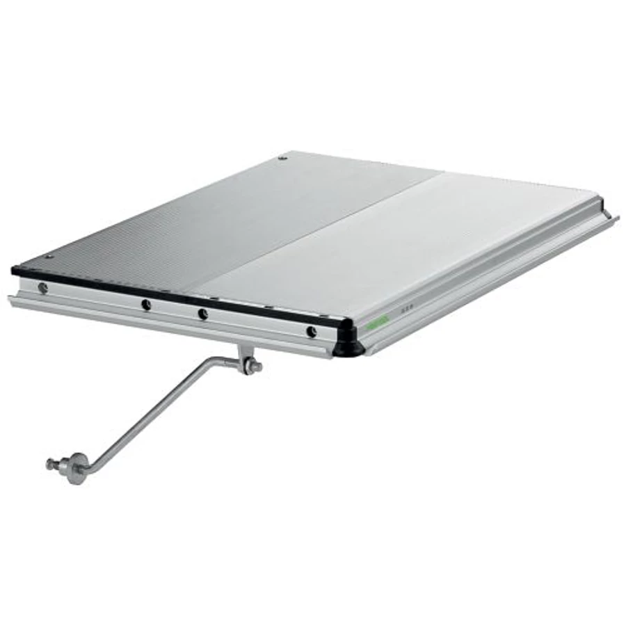 A Festool Asztalszélesítő VB célja, hogy megnövelje a CS 50 VB asztali fűrész alátámasztó felületét, így a széles munkadarabok méretre vágása – például bútordarabok, falemezek és nagyméretű laminált panelek – sokkal stabilabb és biztonságosabb legyen. A kiegészítő 410 mm-rel növeli a felfekvő területet, ami különösen fontos nagy felületek kezelésénél.